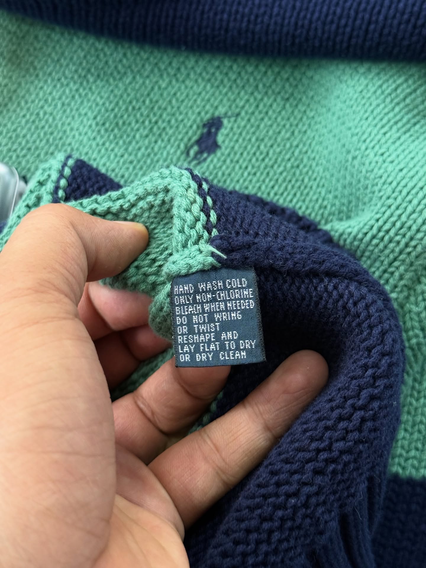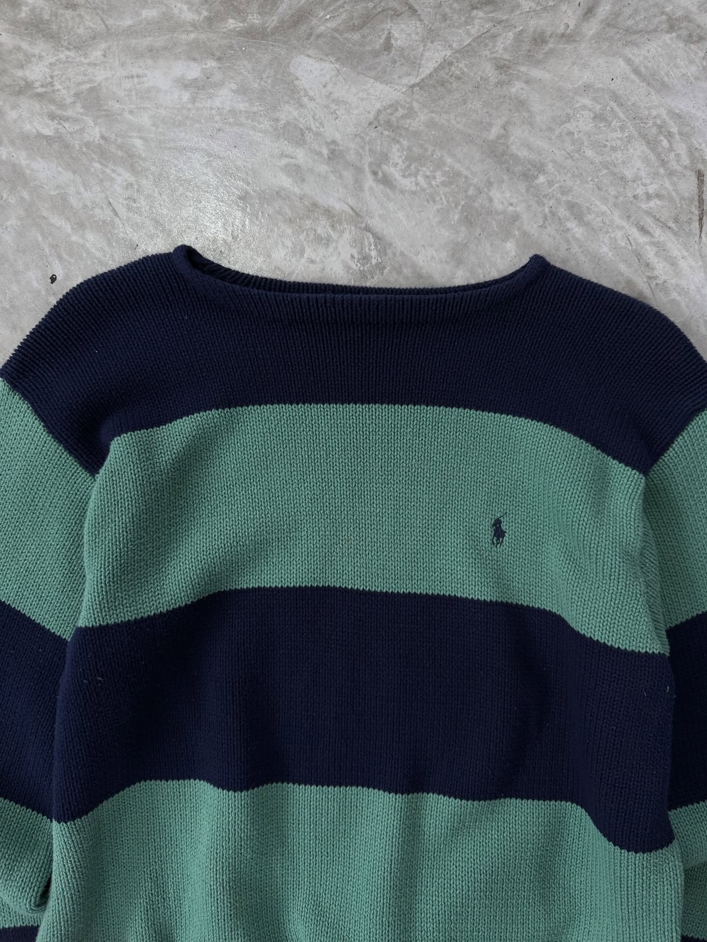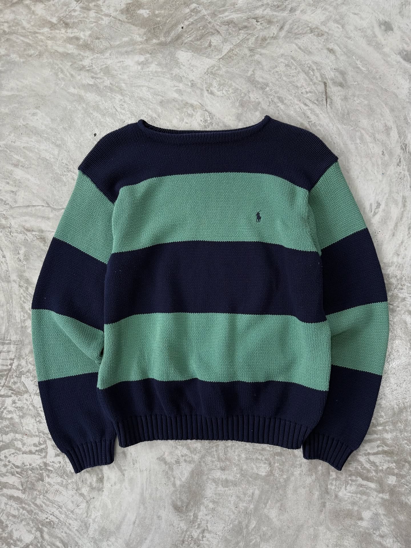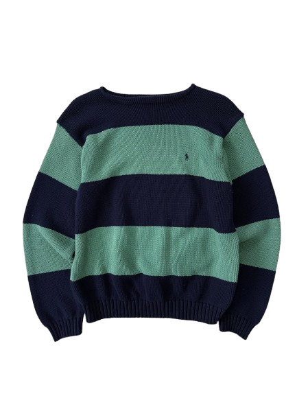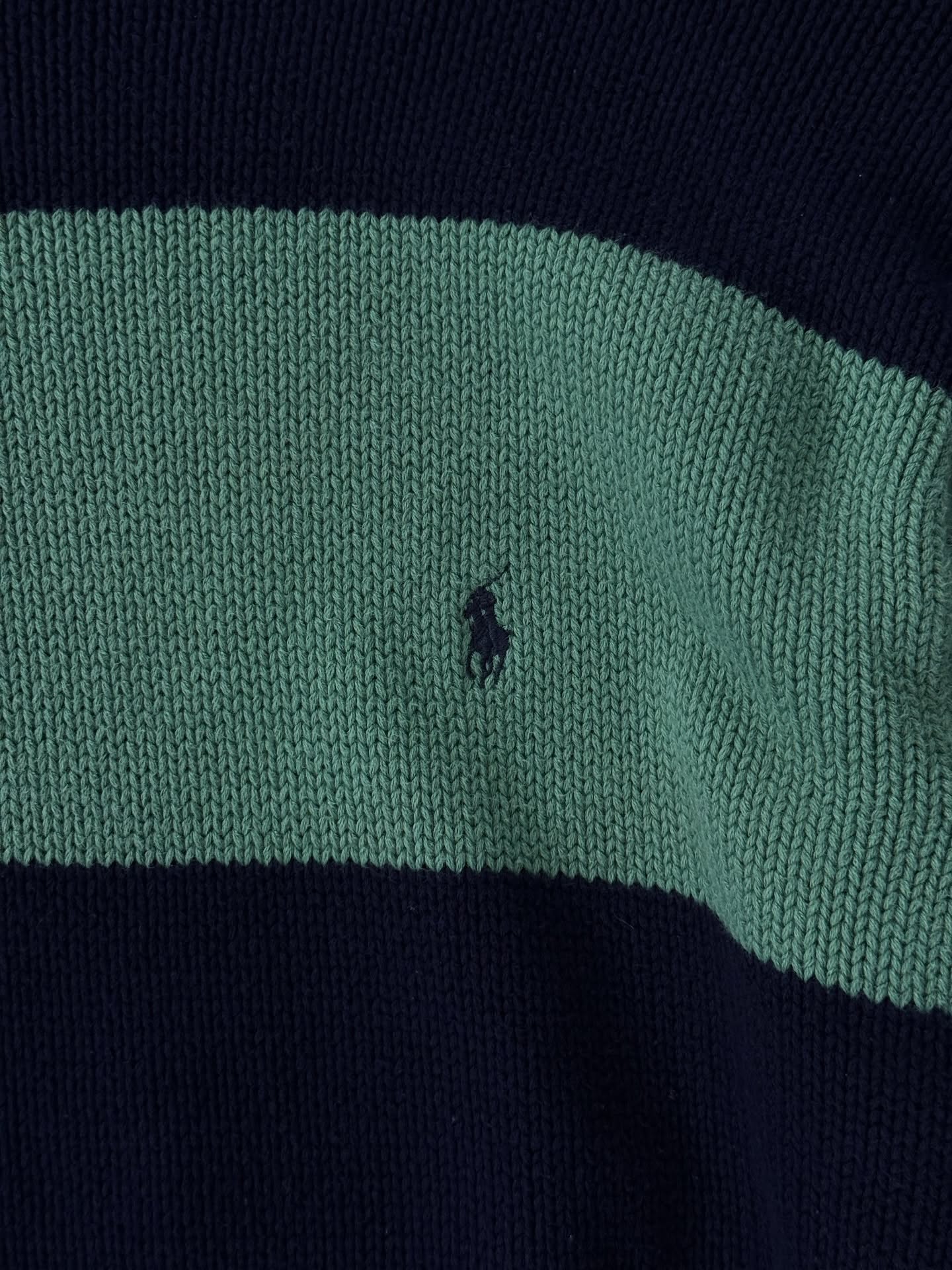 – POLO RALPH LAUREN STRIPPED KNIT GREEN AND NAVY COLOR NAVY PONY 👀 –