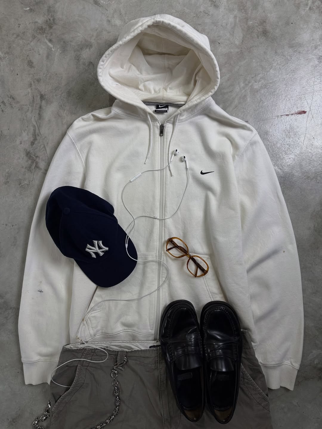 หน้าหลัก Top Hoodies (L/XL) NIKE SMALL LOGO ZIPPER HOODIE WHITE COLOR