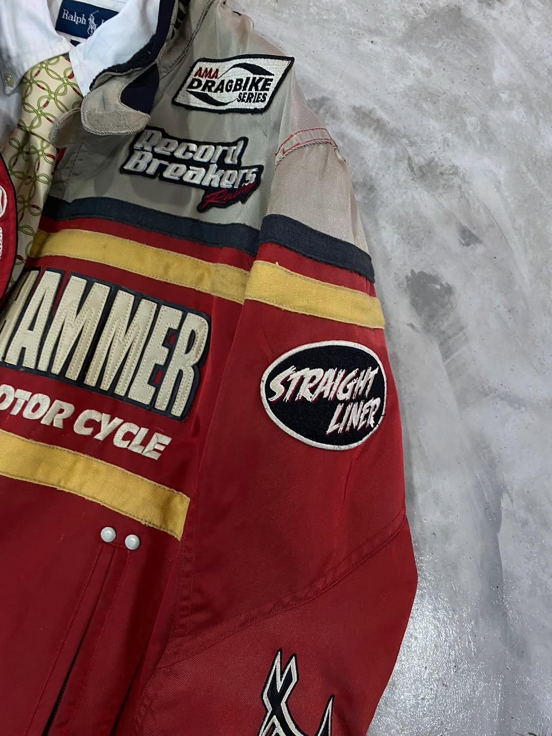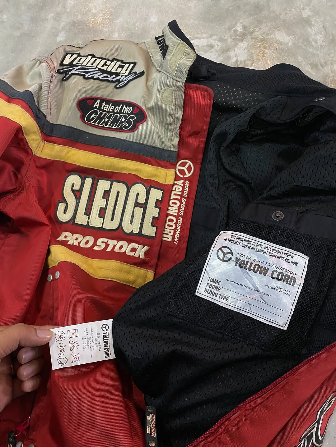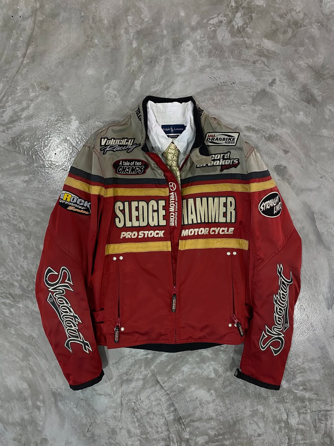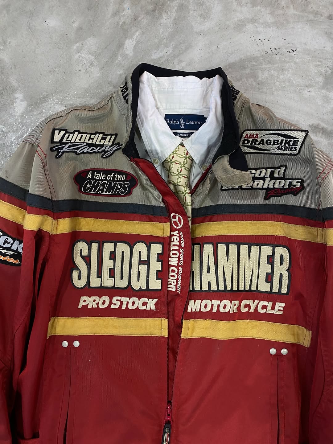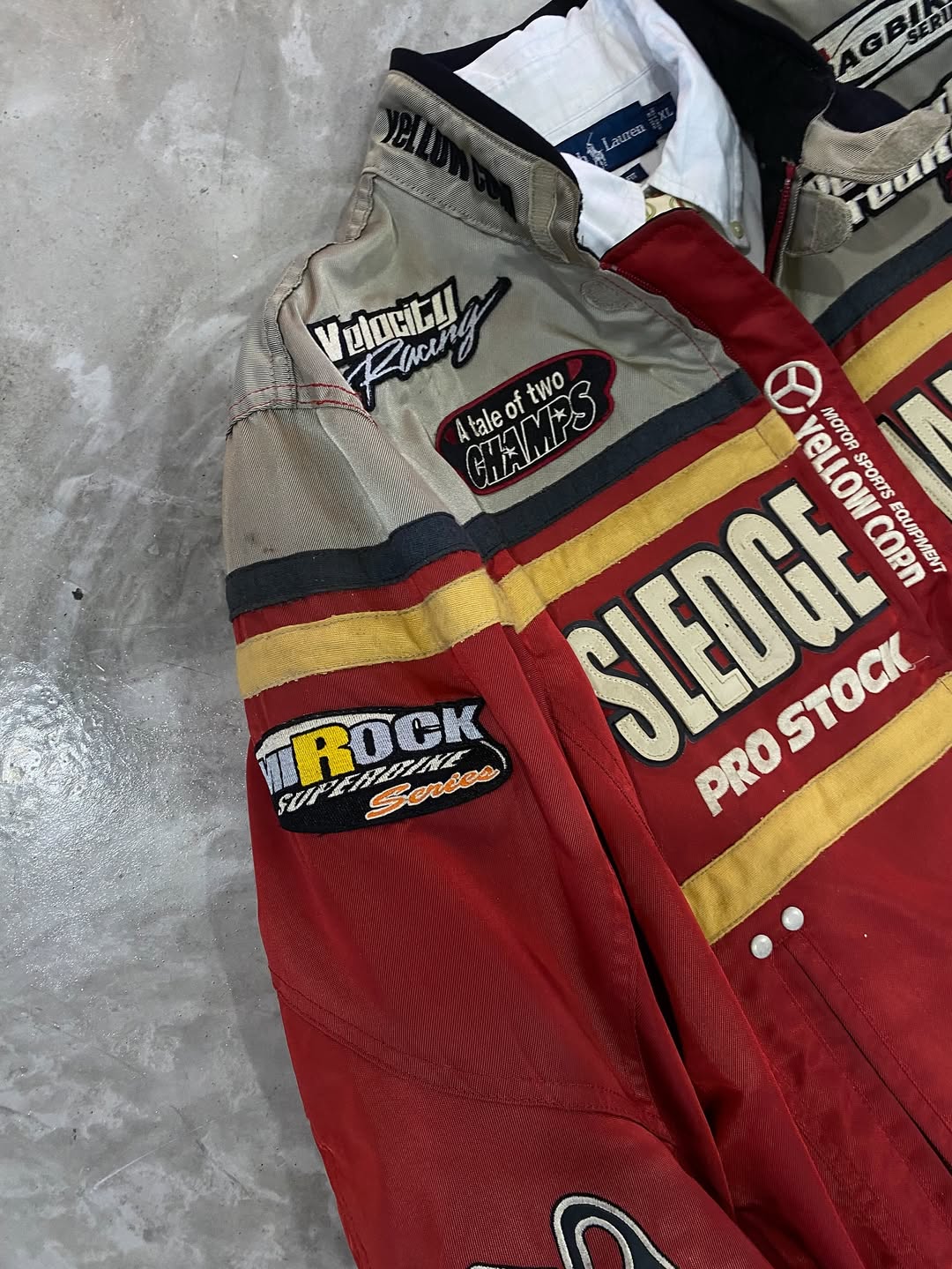 หน้าหลัก Top Jacket (M/L) YELLOW CORN SLEDGE HAMMER PROSTOCK MOTORCYCLE RACING JACKET