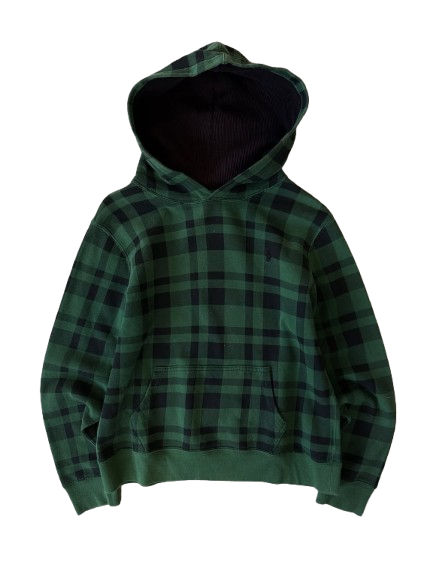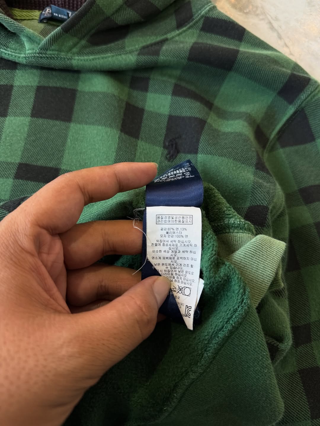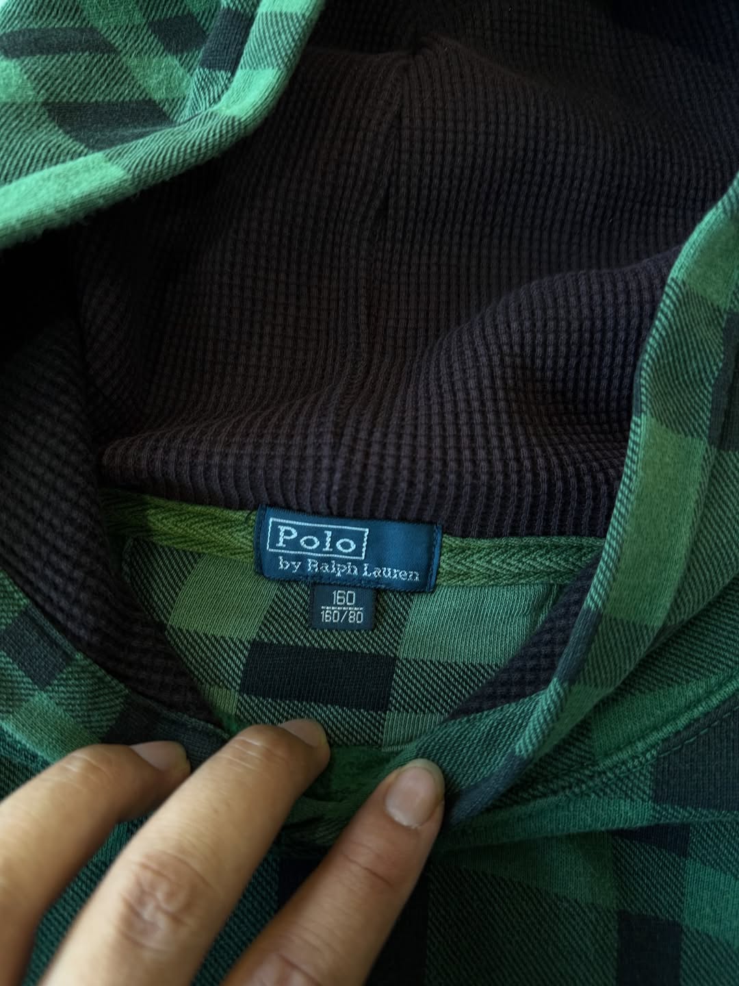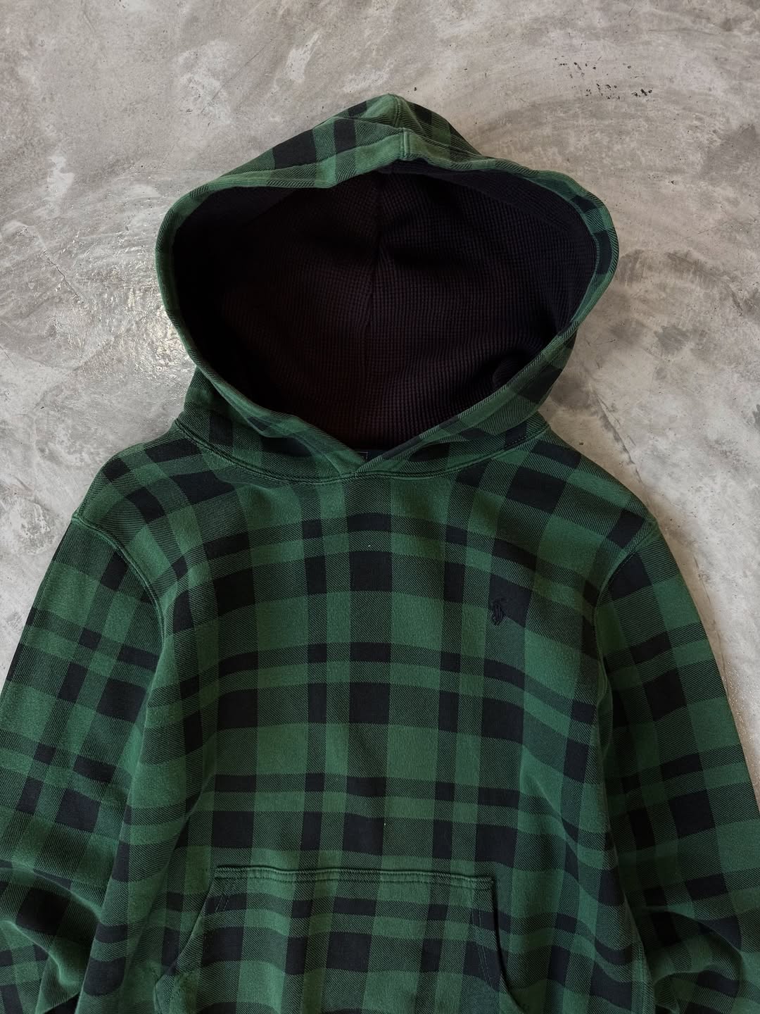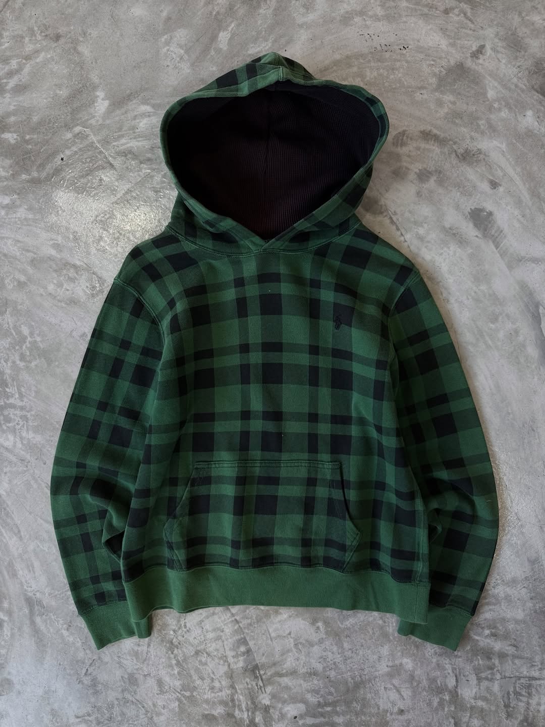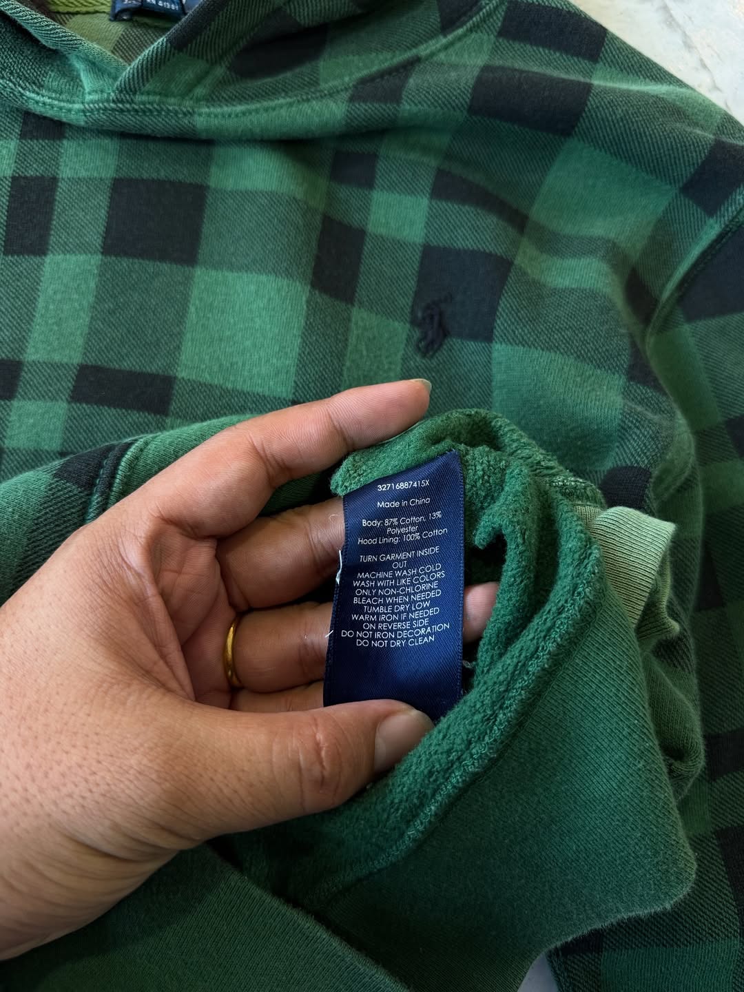 – POLO RALPH LAUREN CROP & BOXY FIT PULLOVER HOODIE GREEN PLAID BLACK PONY 🍀 –